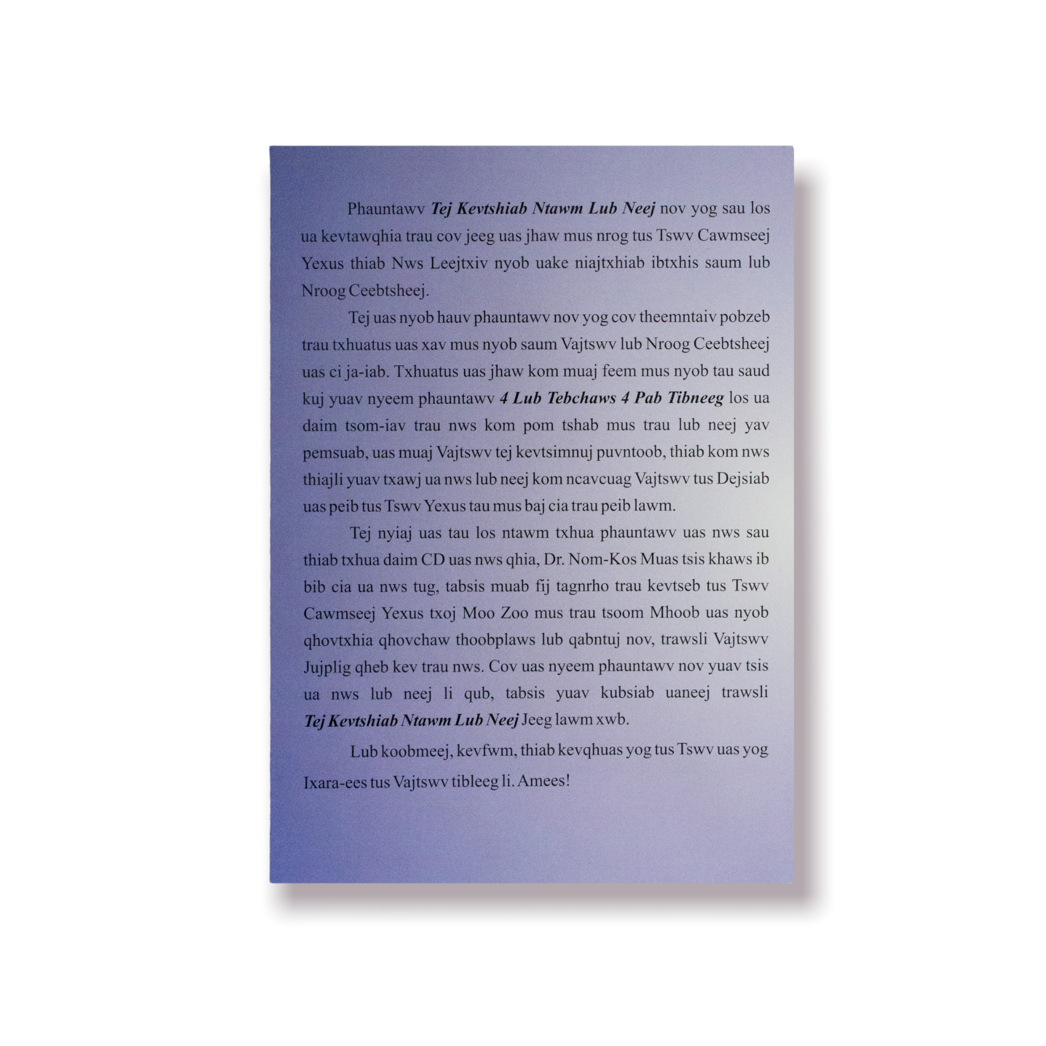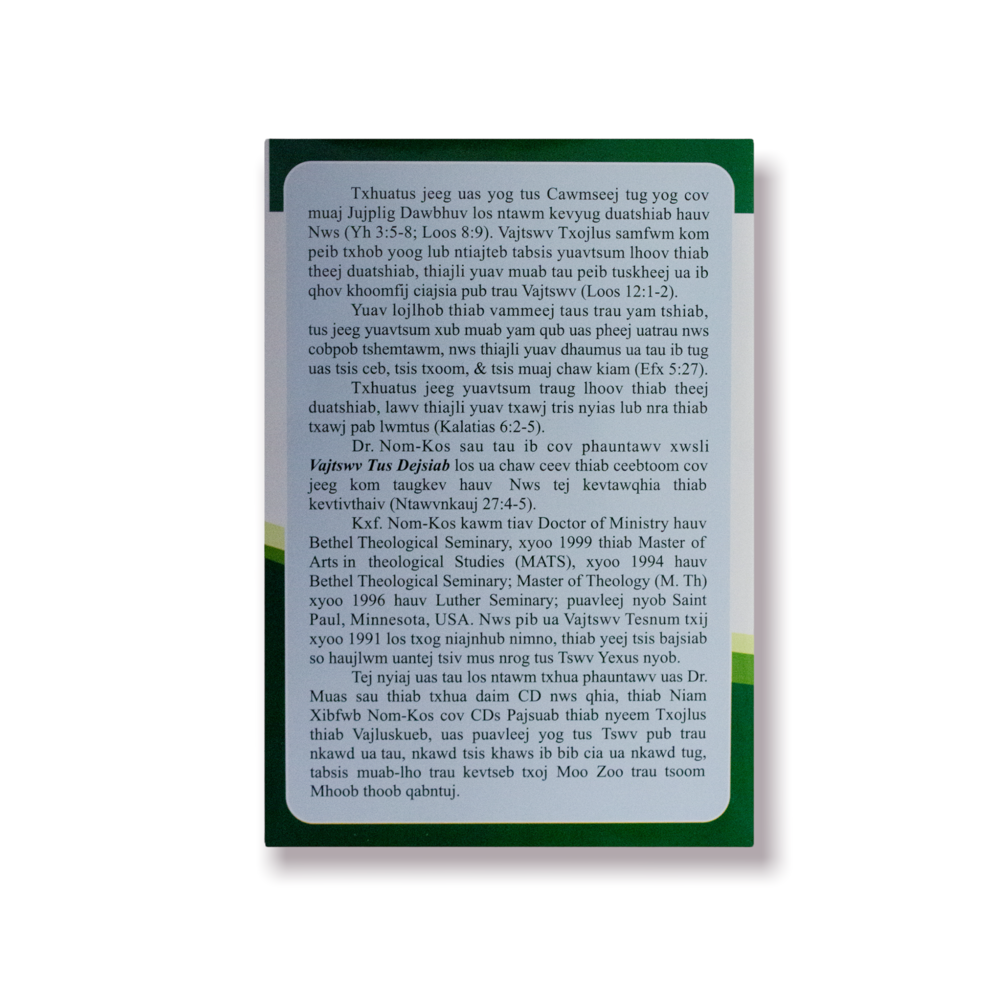 STORE Yexus Yog Lub Taub-hau Ntawm Txhuayam $10.00 Vajtswv Tus Tibneeg $25.00 Vajtswv Tus Dejsiab $25.00 Vajtswv Tej Khoomfij $25.00 Vajtswv Tej Kevzoo Thiab Kevnruj $25.00 Vajtswv Nhub Sabam $25.00 Vajtswv Cov Tubtxib $20.00 Vajtswv Cov Ghaisqhev $20.00 Vajluskueb Dawbhuv & PDF $100.00 Vajluskueb Dawbhuv $80.00 Traug Hloov Los Ntawm Jujplig Dawbhuv $10.00 Tibneeg Tej Mojyam Cwjpwm $10.00 Thaj Av Zoo Qoob $10.00 Tej Vajtswv Cuav $10.00 Tej Kevtshiab Ntawm Lub Neej Jeeg $10.00 Peib Qhov Kevtxofwjchim Cheem Tau Vajtswv Qhov Kevchim $10.00 Pawgjeeg Truajkhov $25.00 Nrog Yexus Tiv Kevtxomnyem $10.00 Ncuakev Mus Lub Nroog Tshiab $20.00 Mus Lub Nroog Dawbhuv $25.00 Mus Leejtxiv Lub Tsev $10.00 Lub Samxeeb Ntawm Kevjeeg Yexus $25.00 Lub Neej Tawgpaj Txitxiv $10.00 Kevtsimnuj Ntawm Txojlus Ciajsia $10.00 Kevtseb Txoj Moo Zoo Kom Thoob Ntiajteb $15.00 Kevlhub Tsimnuj $10.00 Hauvpaus Kevjeeg $10.00 Bluanuj Hauv Vajtswv $15.00 Baj Mus Txaisyuav Lub Koobmeej $10.00 4 Tug Yeebncuab $25.00 4 Pab Tibneeg 4 Lub Tebchaws $20.00